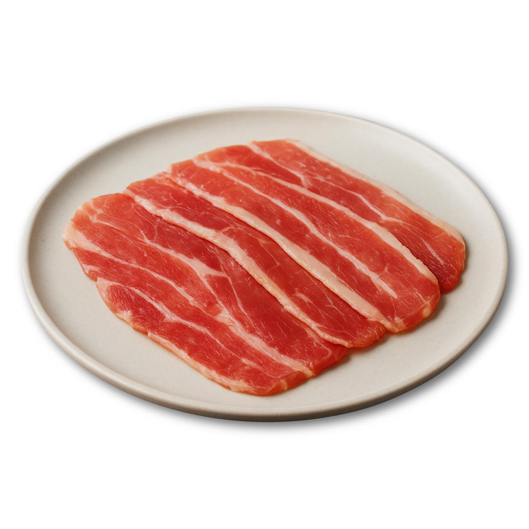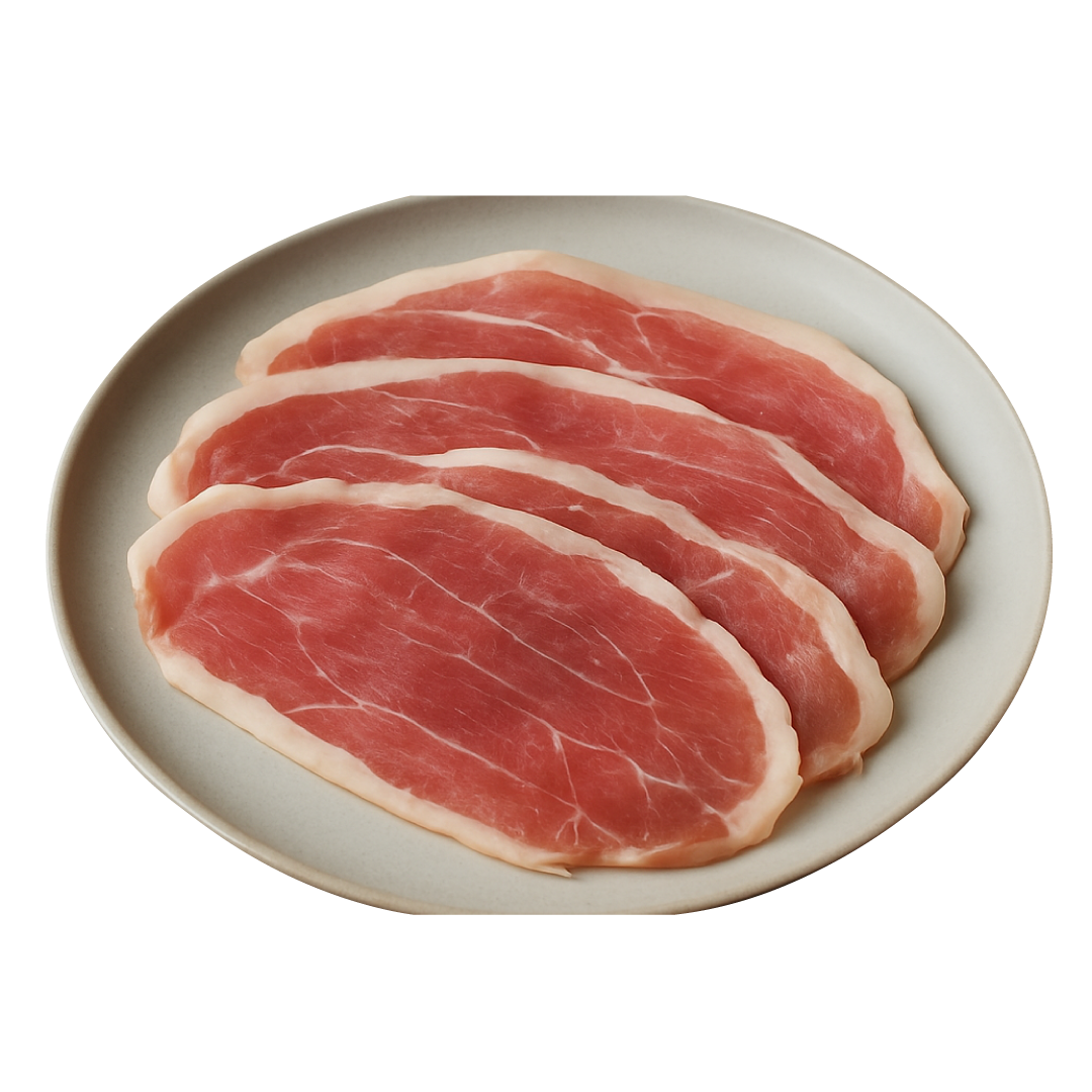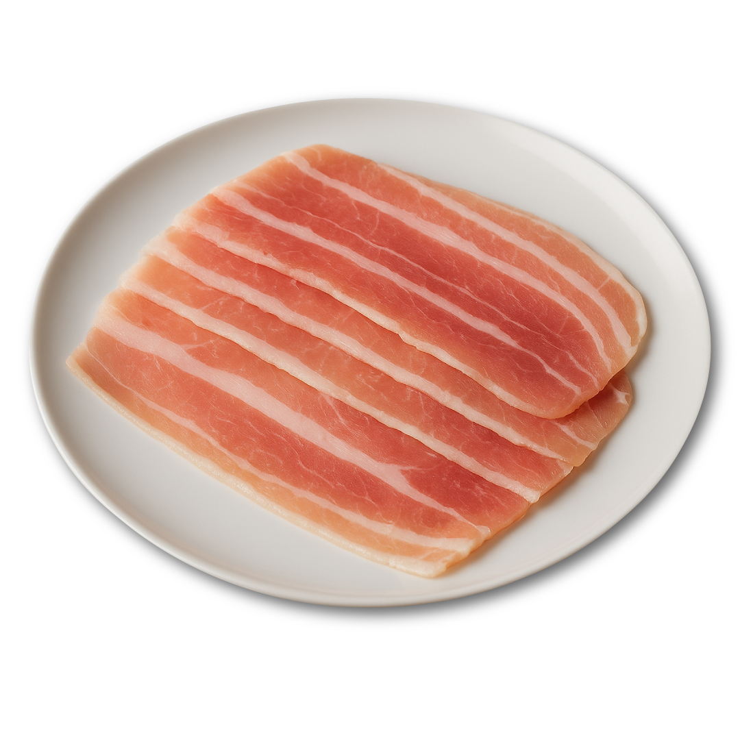 国産豚のバラ肉を長期熟成させ、イタリアのパンチェッタを思わせる深みのある味わいに仕上げました。ただし日本人の味覚に合わせて塩味を控えめにし、脂の自然な甘みと、豚バラならではのしっかりとした歯ごたえが楽しめる逸品です。